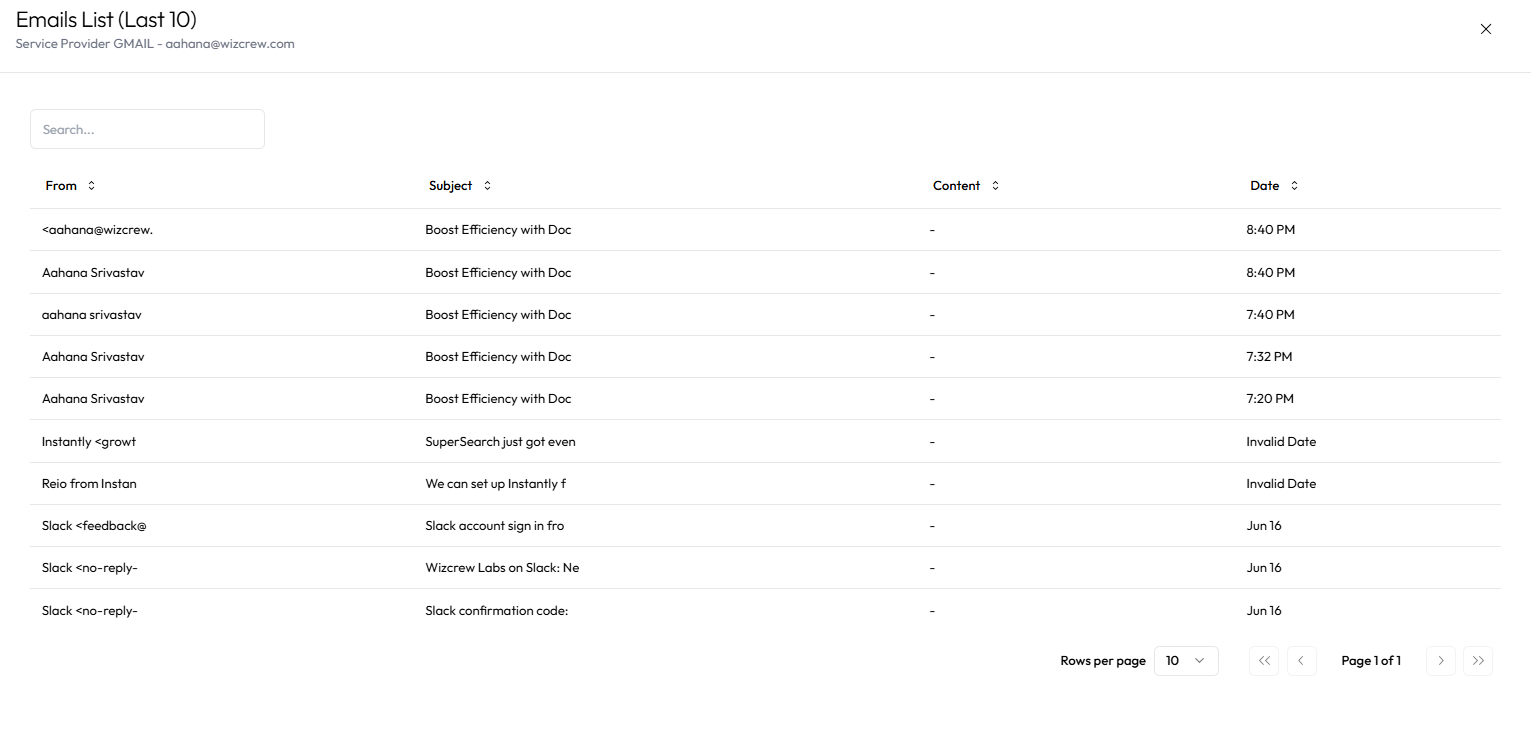 Once an email is connected, it’s displayed in the Accounts tab with additional metrics, including: