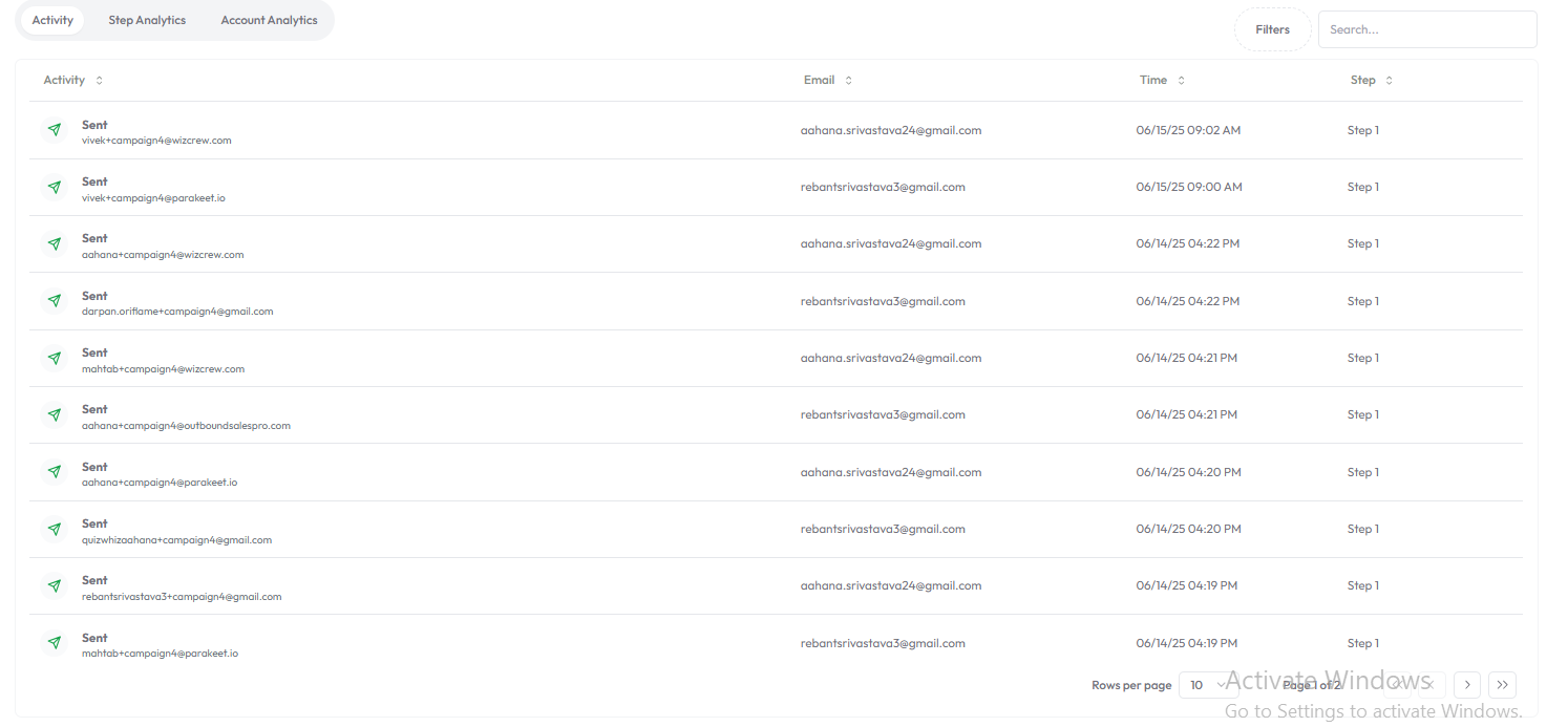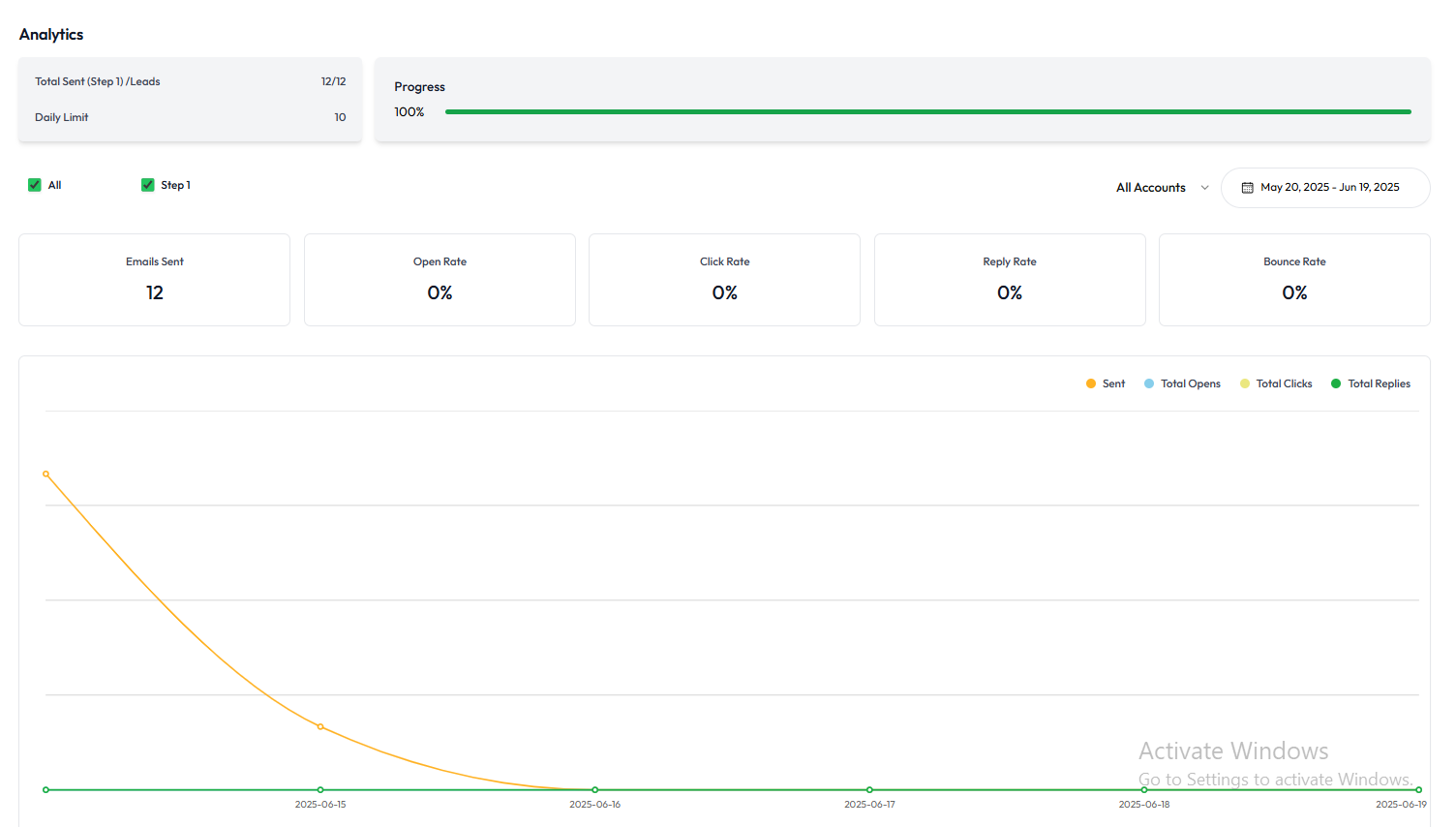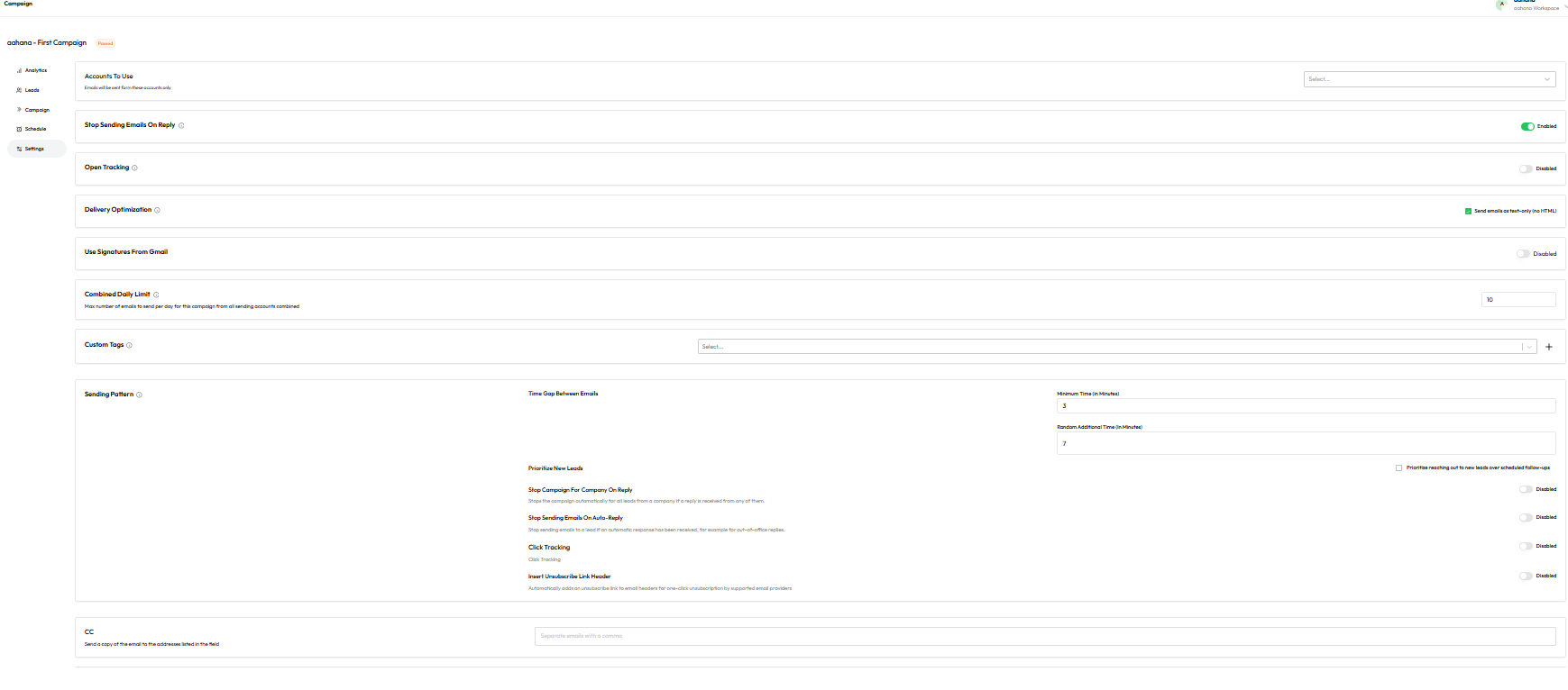 Once inside a campaign, users are presented with a structured interface that includes several functional tabs. These tabs form the control center for managing the lifecycle of a cold email campaign from creation to tracking outcomes.
