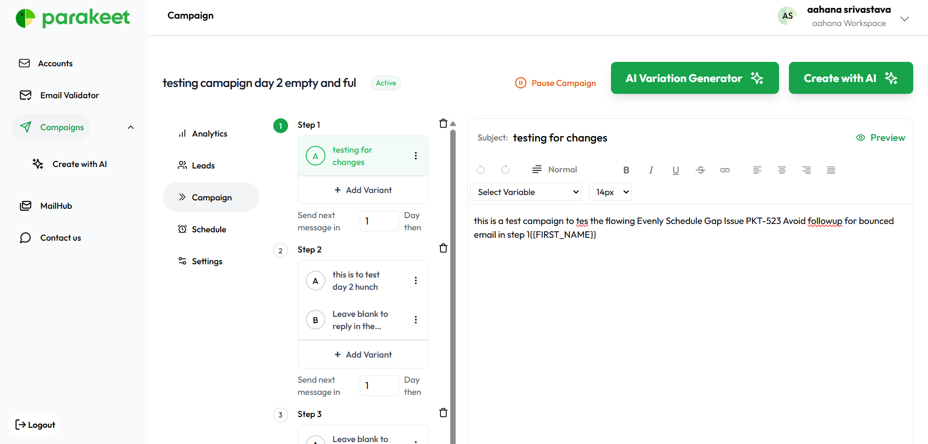 | Create new AI campaign | Follows website → ICP → campaign builder flow |
