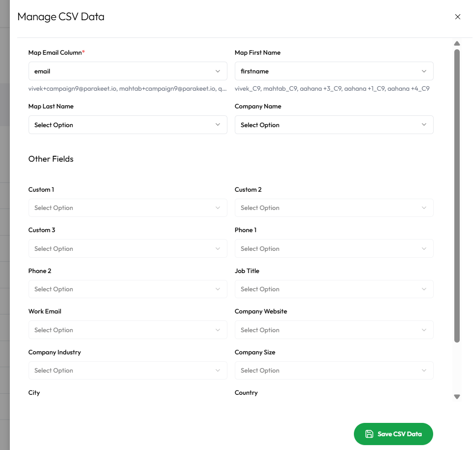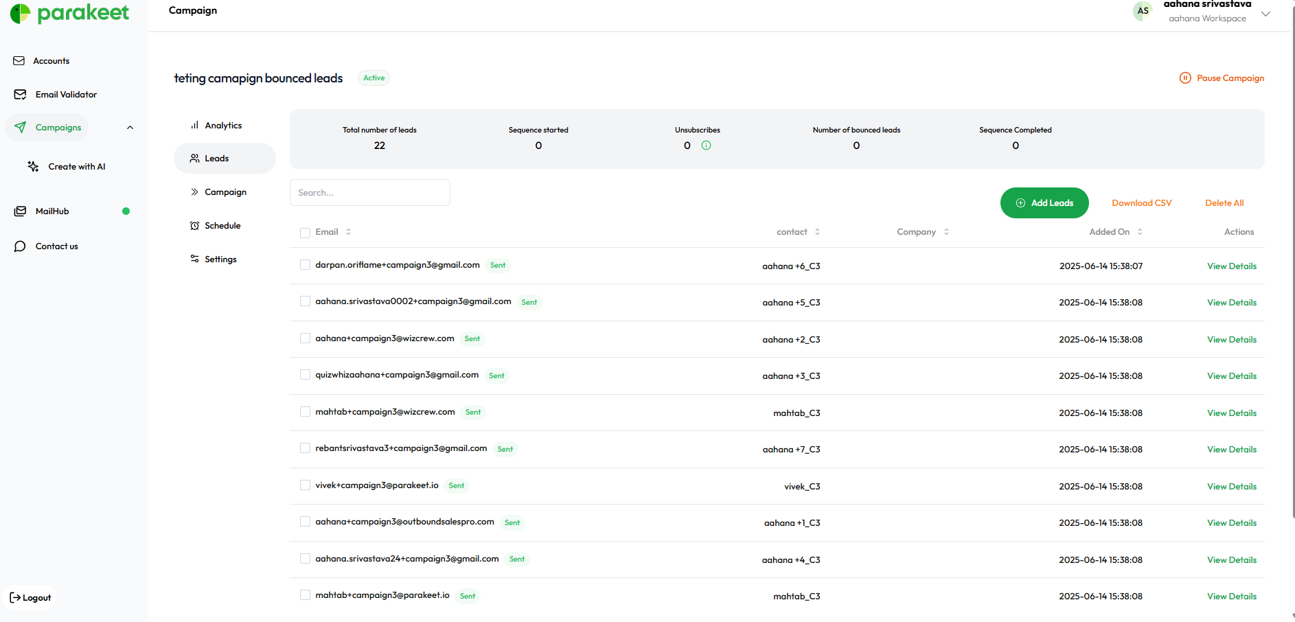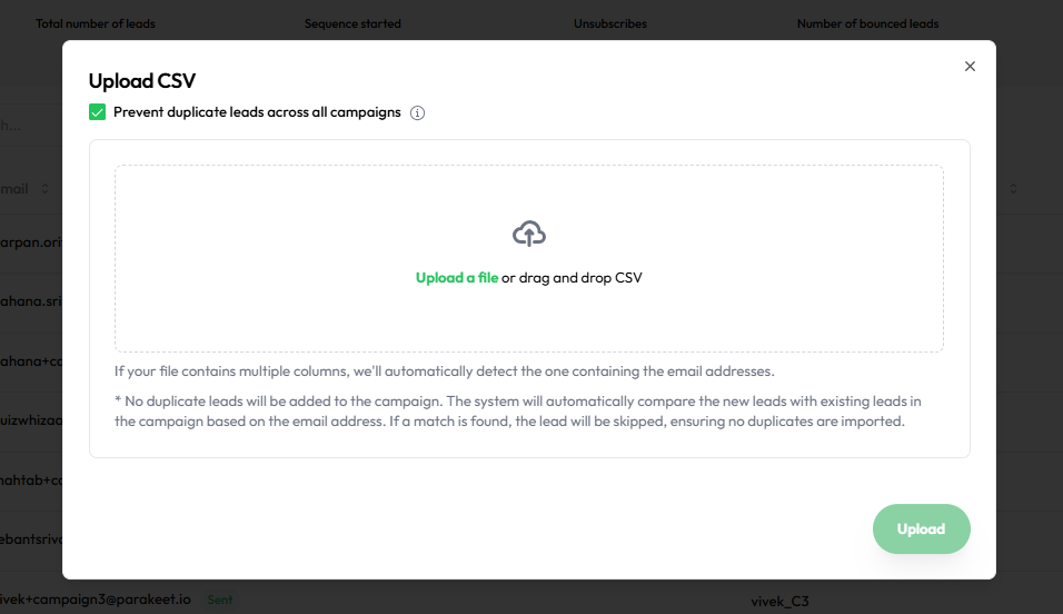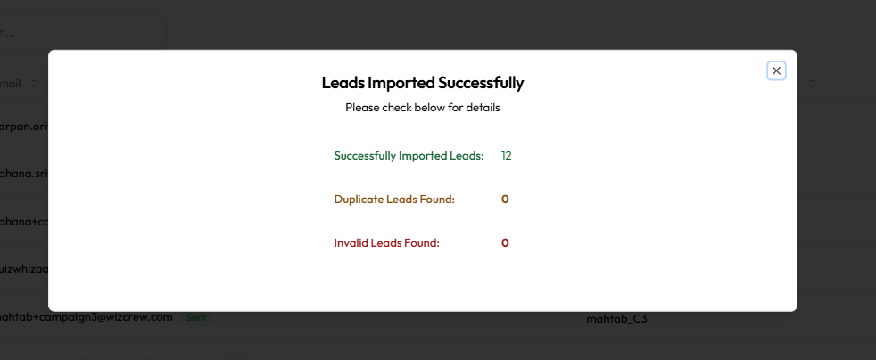 | Leads | Interface to upload, manage, and monitor lead recipients |