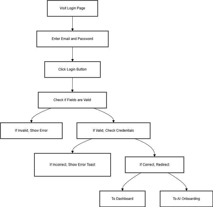 This flow allows existing users to securely access their Parakeet dashboard and campaign tools by logging into their accounts.